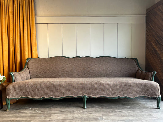 SOLD - Restored Vintage Sofa - Hunter Green Frame & Multi-Colored Tweed Upholstery