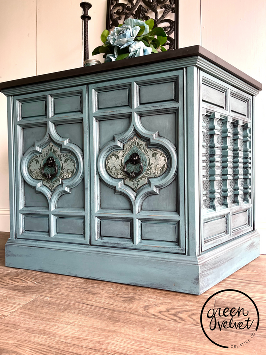Every project begins with a vision — yours or mine — and I guide it from concept to completion with care and attention to detail. From carefully restoring the original wood, to applying rich, layered paints, to selecting luxurious fabrics for upholstery, each piece is thoughtfully crafted to reflect personality, style, and quality craftsmanship.
