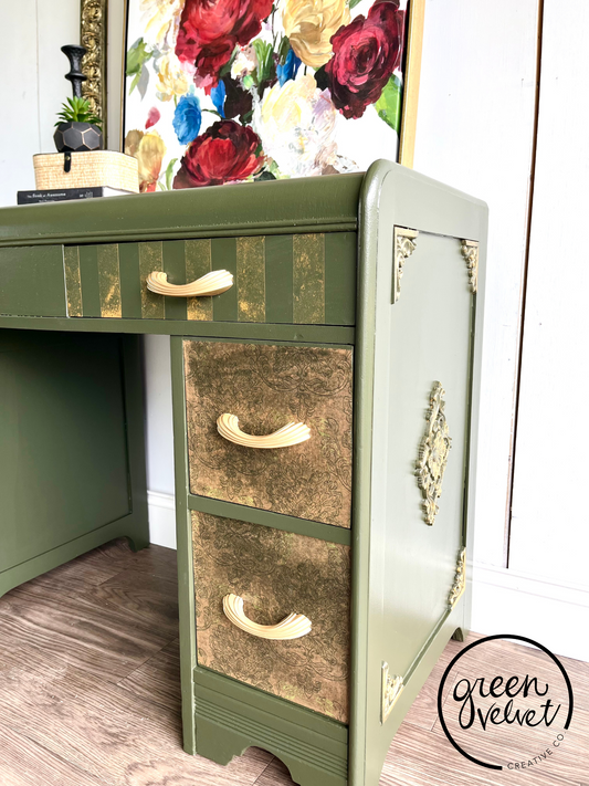 Sold - Dark Forest Green and Gold Waterfall Style Desk