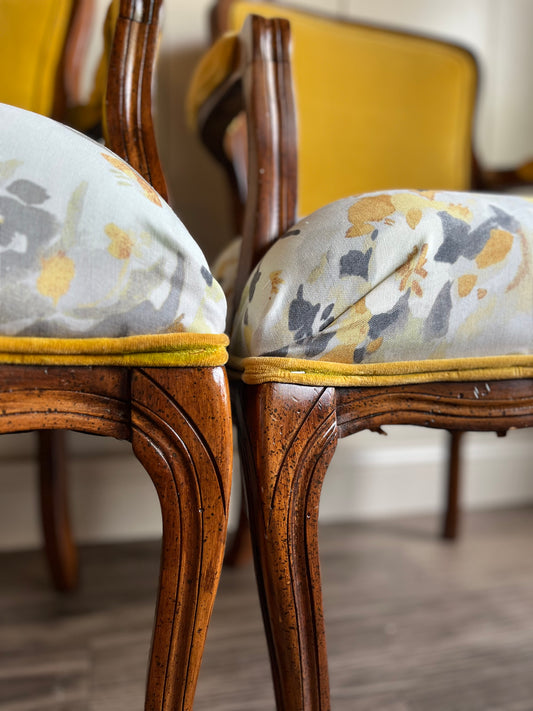 SOLD - Yellow Velvet Vintage Set of Arm Chairs